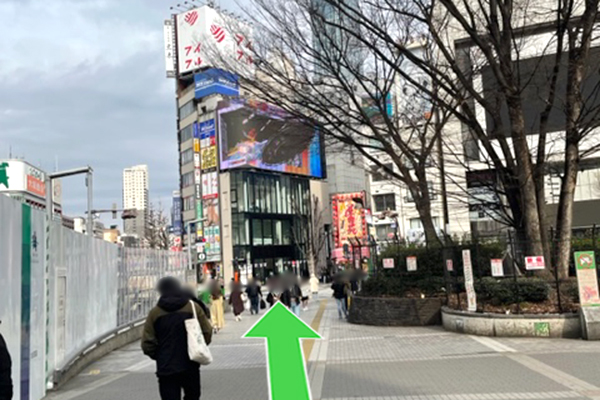 「クロス新宿ビジョン」の隣のビルの二階が宝石広場となります。エレベーターか奥の階段で二階までお越しください。