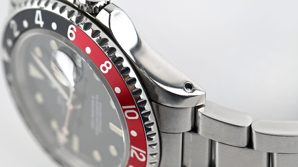 ケースやブレスレット側面の鏡面ポリッシュ仕上げ部分が特に明るくなっています。
